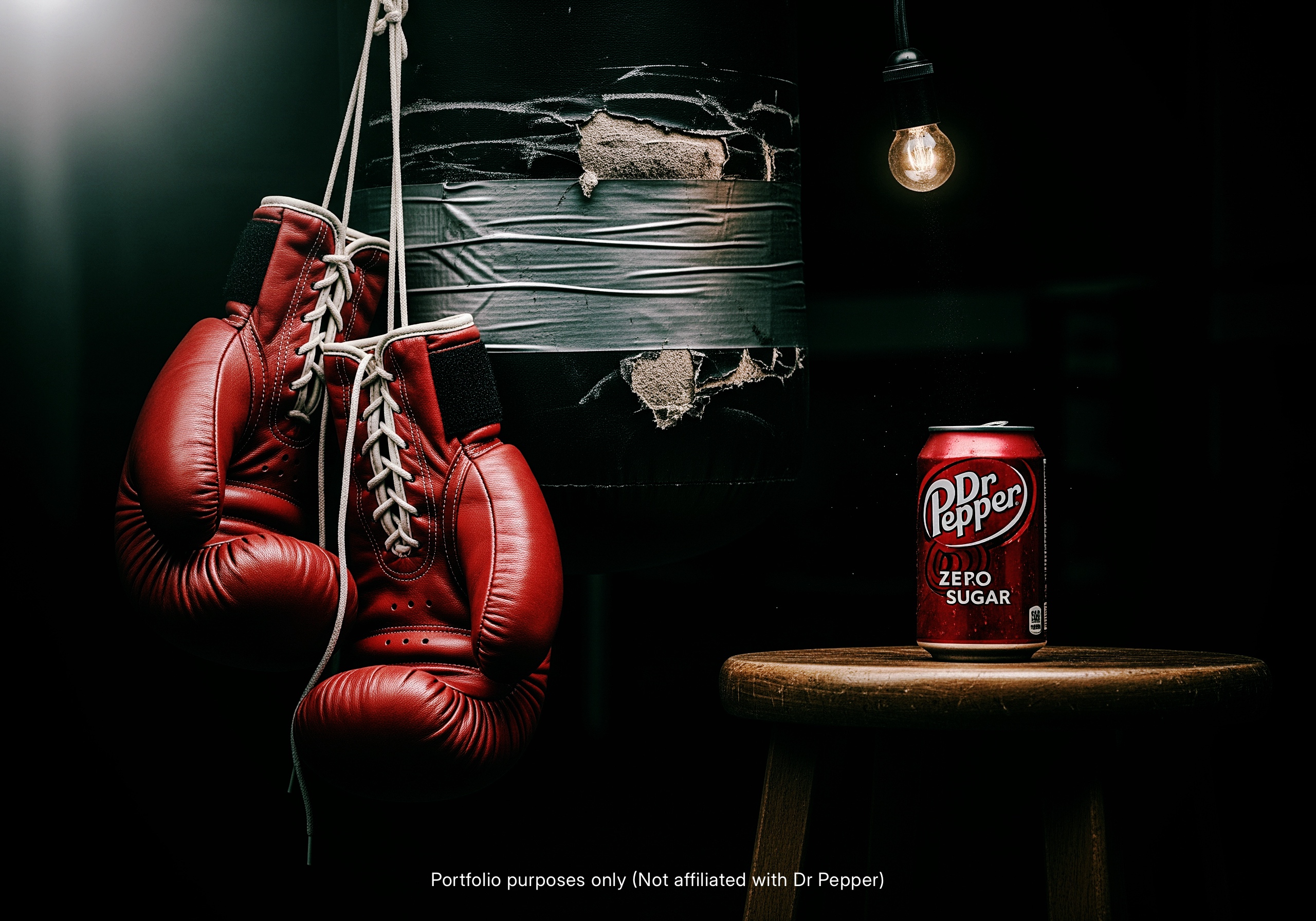 Each photo would show a single object from an activity, all by itself. And right next to it, a can of Dr Pepper Zero Sugar. The message was simple: a quiet win feels great with a smart, zero-sugar reward for living a healthy and passionate life.